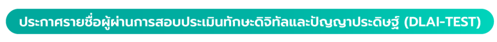 รายชื่อผู้ผ่านการสอบประเมินทักษะดิจิทัลและปัญญาประดิษฐ์ DLAI-TEST ครั้งที่ 2 ปีการศึกษา 2568 รายชื่อผู้ผ่านการสอบประเมินทักษะดิจิทัลและปัญญาประดิษฐ์ DLAI-TEST ครั้งที่ 1 ปีการศึกษา 2568